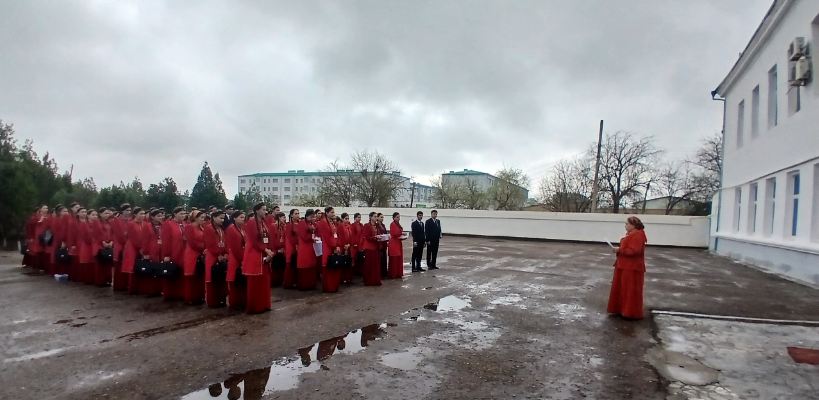 Hormatly mugallymlar we talyp ýaşlar!Biziň halkymyzda "Maşgala — mukaddeslikdir" diýen örän jaýdar jümle bar. Türkmençilikde maşgala diňe bir bile ýaşaýan adamlar däl-de, eýsem asyrlaryň dowamynda süzülip gelen edep-ekramyň, milli terbiýäniň we ruhy gymmatlyklaryň uly mekdebidir. Şu günki wagyz-nesihat çäremizde türkmen maşgalasynyň sütünlerini emele getirýän däp-dessurlarymyz barada durup geçmek isleýärin.Ulyny sylamak — Milli edebiň gözbaşy.Türkmen maşgalasynda uly ýaşlylara goýulýan hormat iň birinji tertip-düzgün bolup durýar. Sözüni bölmezlik: Ulylar gürläp durka, kiçiniň gürlemegi ýa-da sözüni bölmegi edepsizlik hasaplanýar. Hormat goýmak: Saçak başyna ilki bolup maşgalanyň iň ulusynyň geçmegi we nahara ilki bolup ulynyň el gatmagy — bu diňe bir düzgün däl, eýsem kiçi nesliň ula bolan sarpasydyr. Görelde: "Ataly ogul — älem jahan, eneli gyz — her bir işde bolar rowan" diýlişi ýaly, atanyň we eneniň sözüni tutmak maşgalanyň agzybirliginiň girewidir. Myhmanparazlyk — Maşgalanyň bereket gapysy Türkmen maşgalasynda myhman iň eziz adamdyr. "Myhman — ataňdan uly" diýen nakyl ýöne ýere däl.Gapydan gelen her bir adamy, tanyş bolsun ýa nätanyş, mähir bilen garşylamak we saçak ýazmak türkmeniň iň gadymy däpleriniň biridir.Çagalar myhman garşylananda hyzmatda durmagy öwrenýärler, bu bolsa olaryň geljekde adamkärçilikli we eli açyk bolup ýetişmegine ýardam edýär. Zähmet terbiýesi we Hünär mirasyTürkmen maşgalasynda çagany zähmete uýgunlaşdyrmak kiçijik wagtyndan başlanýar."Atasynyň hünäri — ogla mirasy" diýlişi ýaly, kaka ogluna öz hünärini, ene bolsa gyzyna el işlerini (keşde çekmek, haly dokamak, nahar bişirmek) öwretmek mukaddes borç hasaplanýar. Öýdäki we mellekdäki işlere gatnaşmak arkaly çaga zähmetiň gadyryny bilmegi we öz üstüne jogapkärçilik almagy öwrenýär. Maşgalada Agzybirlik we Maslahat. Biziň däp-dessurymyzda möhüm meseleler hemişe "geňeş" arkaly çözülýär. Maşgalada uly-kiçi, hatda çagalaryň hem ýagdaýy göz öňünde tutulyp, maslahatlaşylmagy agzybirligi berkidýär."Maslahat bilen kesilen barmak agrymaz" diýen ýörelgä eýerip, birek-birege goldaw bermek türkmençiligiň iň gowy taraplarynyň biridir. "Guş uýasynda görenini eder."Çaganyň aňyna ene süýdi bilen siňen türkmençilik terbiýesi, onuň bütin ömrüne ýetjek ruhy galkandyr. Milli däplerimize ygrarly boluň, çünki bizi beýleki halklardan tapawutlandyrýan hem-de beýgeldýän zat biziň köklerimizdir. Maşgala däp-dessurlarymyzy gorap saklamak — diňe bir geçmişi hormatlamak däl, eýsem sagdyn we berk geljegi gurmakdyr. Goý, her bir türkmen ojagynda hemişe agzybirlik, saçagynda bolsa bereket bolsun! Terbiýeli nesil — bagtly geljegiň kepilidir.